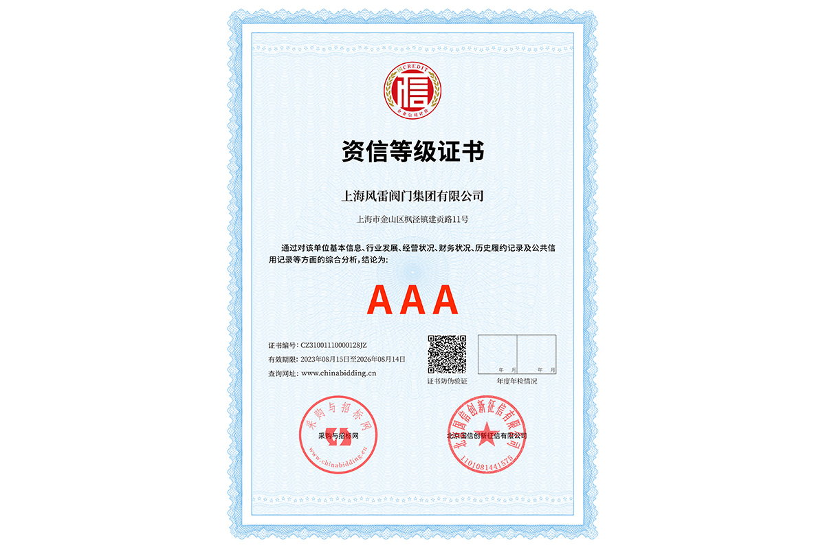 AAA資信等級證書