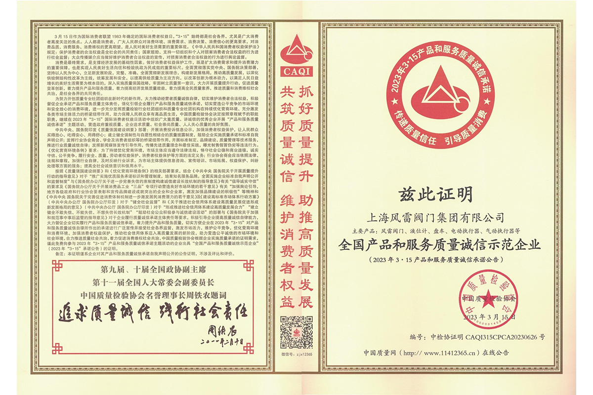 315全國產(chǎn)品和服務(wù)質(zhì)量誠信示范企業(yè)